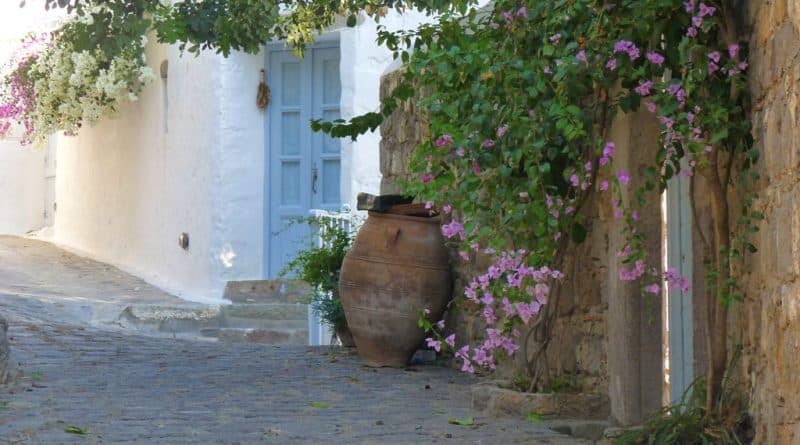 De toeristenbootjes uit Samos spugen hun mensen uit voor een dagtour en om vier uur vertrekken ze weer om het eiland in rust achter te laten. Cruiseschepen doen na Santorini ook Patmos aan, maar ook hier hetzelfde verhaal. Een rondje grot en