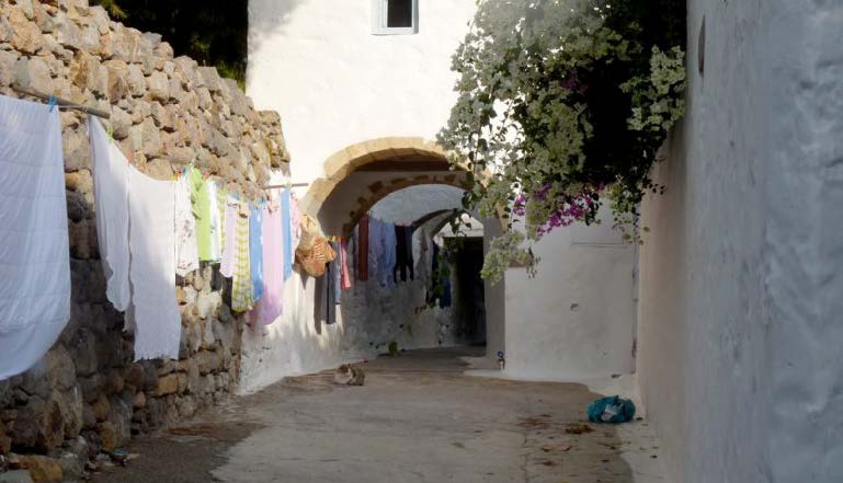 huisjes schitterden in de zon. Het klooster van Johannes ligt indrukwekkend boven de huisjes op een berg. Na al mijn rondreizen door Griekenland ben ik thuis.