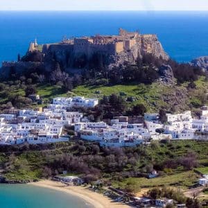 Als we bij Lindos aankomen gaan we lopend het stadje in. Uitgestorven straatjes, witte huisjes. Tot mijn schrik zie ik een nu dicht punt waar je in de zomer op de rug van een ezel naar boven kan worden gedragen om de vesting van Lindos te bezoeken. Ik dacht dat dit inmiddels verboden was in Griekenland?